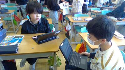 佐藤義紀先生と理科室での理科の学習を楽しんでいます。タブレットを使った学習がみんなの意欲につながっていました。また、委員会の常時活動にも挑戦しています。美化委員会は、放課後、掃除をしてくれていました。