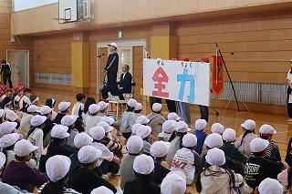 今日は、運動会実行委員による結団式が行われました。今年度のスローガンは「全力」です。実行委員の話を聴き、組ごとに勝利への思いを高めた時間となりました。