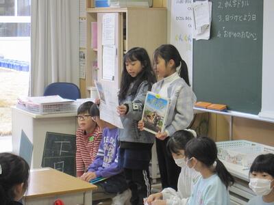 国語で1年生におすすめしたい本を話し合う学習をしました。「1年生が読むなら、絵が面白い本がいいかな。」「字をたくさん読めるようになっているから、長い本も読んでほしいな。」など、読む相手を思い浮かべながら真剣に話し合いました。