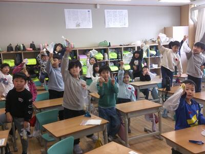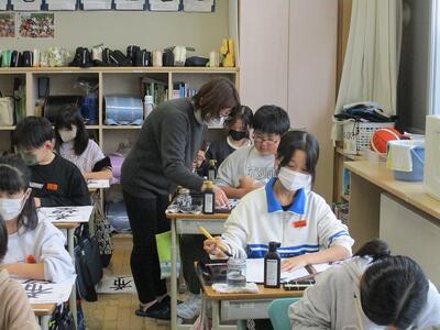 15日(月)は、書同連盟の先生方をお招きして書初め練習を行いました。「希望」のバランスに苦労しながらも、たくさんほめていただき、自信をもって書くことが出来るようになりました。また、今週は、家庭科で調理実習を行いました。ミシンで作ったエプロンを着用して、みそ汁とホウレンソウのおひたしを作りました。だしの味を比べながら協力して調理実習を楽しみました。