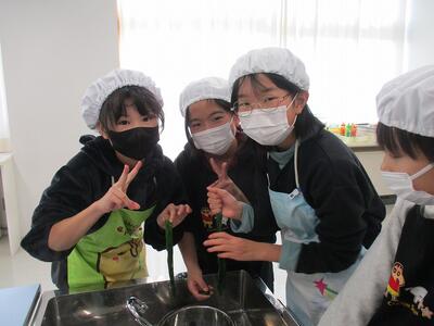 先週の火曜日、木曜日、金曜日に各クラスで調理実習を行いました。調理実習にむけて、自分たちで料理を決め、必要な分量や作り方を調べてきました。調理実習本番では、野菜をゆでる時間が子どもたちの考えていた以上に長かったり、味付けが難しかったりしましたが、班の友達と協力して料理を完成させることができました。