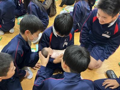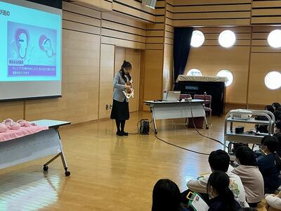 12日(金)に天童市民病院の結城けい子さんに『命』についてお話をしていただきました。胎内にいる赤ちゃんや、生まれたばかりの赤ちゃんの人形を持つ体験をしたり、先生の話を聞いたりして、命の尊さや生まれてきたことの奇跡を学ぶことができました。