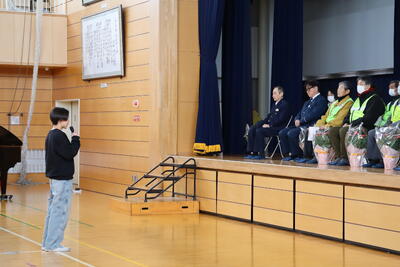 2月10日(火)に、神町交番さん・交通指導員さん・見守り隊の方・神町パトロールさんに来ていただき、『安全を見守ってくださる方への感謝の会』をひらきました。生活委員会が中心となり、準備を進めてきました。本番では、実行委員長の言葉や全校合唱で、感謝の気持ちを伝えました。