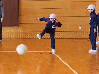 2月13日(金)の1時間目にりんご体育でキックベースゲームを行いました。みんなすぐにルールを覚えて素早く動けたので、たくさんゲームをすることのできた楽しい時間になりました。次第に、相手チームのいないところに蹴ったり、蹴る強さを変えたりして、工夫を凝らしながらのプレイもできるようになってきたので、次回のりんご体育も楽しみにしているところです。