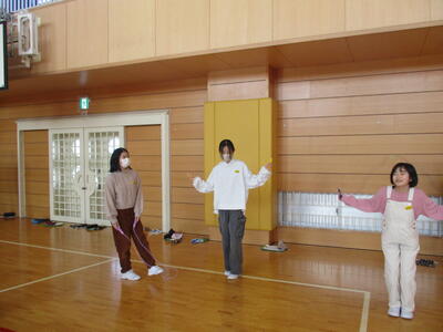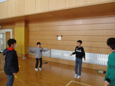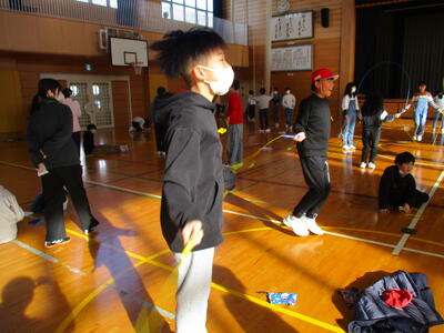 今週は、体育委員会が企画した『なわとびweek』が開催されています。最初に体育委員が全員の前で、お手本として二重跳びやハヤブサなどの難しい技を披露しました。その後、友達とお互いに回数を数えたり、跳び方を教え合ったりしました。