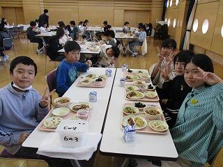 1. 6年生「バイキング給食」 投稿: 大森小学校-1 (10/28) 20日(月)と28日(火)に6年生のバイキング給食がありました。1・2組と3・4組に分かれて、大森ホールで給食をいただきました。昨年度の途中まで給食にも出ていたソフト麺や、給食では出てこないようなフライドチキンなど、小学校生活で1度しかない特別な給食を子どもたちは美味しく味わっていました。 2