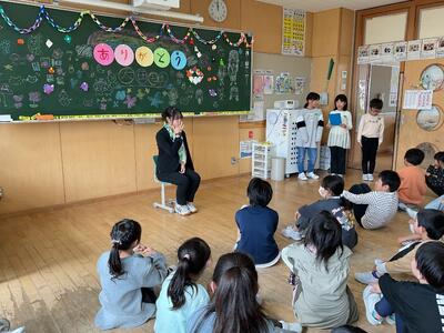 10月1日から10月29日までの20日間、一緒に過ごした太田先生とのお別れ会をしました。実習期間中、太田先生からたくさん遊んでもらったり、勉強を教えてもらったりして、子どもたちは、とても充実した日々を過ごすことができました。お世話になった太田先生を喜ばせるために、一生懸命教室の飾りつけをしたり、会の進行をしたりして、感謝を伝えました。子どもたちも太田先生も涙なみだの会となりました。20日間ありがとうございました。