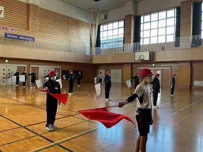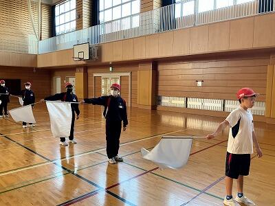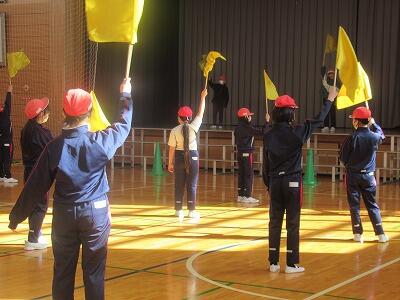 1. 6年生 体育 「表現運動」 投稿: 大森小学校-1 (11/13) 6年生の体育では、学習発表会にむけて、フラッグを使った表現運動に取り組んでいます。1・3組では『怪獣の花唄』2・4組では『学園天国』の曲に合わせてフラッグを振ります。全員が揃ったときのフラッグは迫力満点です。保護者のみなさん、ぜひ楽しみにしていてください。 1