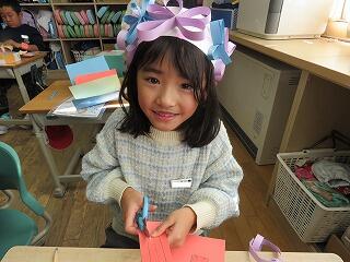 1. 2年生 図工「わっかでへんしん」 投稿: 大森小学校-1 (16:55) 図工「わっかでへんしん」の学習に取り組んでいます。お面に顔を付けて動物になりきったり、わっかとわっかを繋いでお花を作ったりしながら自分だけの作品を仕上げています。みんな、とってもかわいい姿に変身することができました。 0