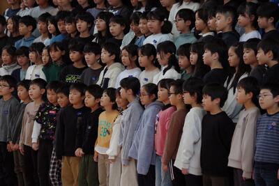 1. 4年生「全校生に聴いてもらいました」 投稿: 大森小学校-1 (11/18) 18日(火)の全校朝会では、4年生が市合同音楽会で発表する歌を、全校生に向けて発表しました。きれいな歌声だったという感想をもらえて喜んでいる4年生です。20日(木)はいよいよ本番。残り僅かな練習に前向きに取り組んでいきます。 4