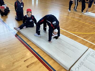 1. 2年生 体育「マット運動遊び」 投稿: 大森小学校-1 (17:47) 11月に入ってからマット運動に取り組んでいます。前や後ろに転がったり、手で自分の体を支えて逆立ちをしたりしています。技のできるポイントを意識することで、できる技がどんどん増えました。 0