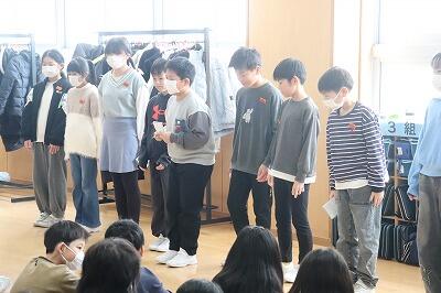 1. 5年 6年生を送る会に向けて 投稿: 大森小学校-1 (01/14) 6年生を送る会に向けての活動が始まりました。実行委員を中心に、どんな6年生を送る会にしたいか話し合い、そのために何が必要かを考え、5年生全体に知らせました。子どもたちはうなずきながら話を聞いていました。5年生全員でがんばっていきます。 0