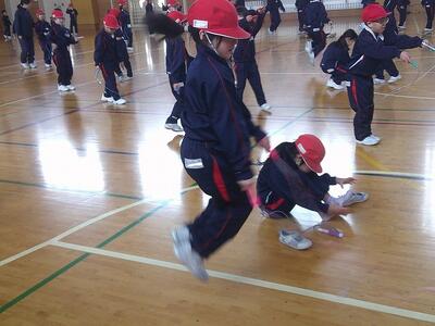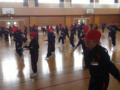 1. 1年生 体育「なわとび」 投稿: 大森小学校-1 (01/15) 体育の学習ではなわとびを行いました。前跳びや後ろ跳び、あや跳び、片足跳びなど様々な跳び方にチャレンジし、思い切り体を動かすことができました。小学校に入学するまでの間に、なわとびを経験してきたようで、得意な技をたくさん披露していました。来週はなわとびウィークもあるので、たくさん練習して体力がつくことを願っています。 0