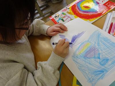 1. 1年生 図工「こすりだしたかたちから」 投稿: 大森小学校-1 (02/26) 図工では、でこぼこしているところを探し、クーピーでこすり出して模様をつくりました。鍵盤ハーモニカや探検バッグ、連絡袋などを見つけ、「ここもでこぼこしている!」「ここも使えそう!」などと楽しそうに活動していました。こすり出してみると様々な模様が浮き出てきて、新しい発見をすることができました。 0