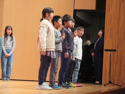 9日(木) 東根市合同音楽会がタントクルセンターで開かれました。大森小学校からは4年生117名が参加しました。曲目は「人間っていいね!」です。7月から練習を重ね、初めての二部合唱に挑戦しました。大森小の学校紹介の後、自分たちの思いを届けようと、気持ちを込めて歌いました。大成功でした。