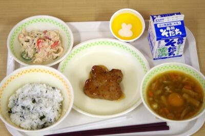 今年の「十五夜」は9月17日(火)です。きょう、給食では「お月見メニュー」をいただきました。わかめごはん、あんかけうさぎ型バーグ、ツナ大根サラダ、お月見団子汁に十五夜デザートがつきました。天気予報では、今晩晴れそうなので中秋の名月が見られそうです。お月見ができるといいですね。