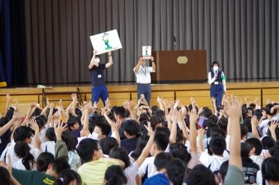 9月5日に6年1組が総合的な学習の時間の一環で、ブランド戦略推進課の木村さんと池田さんよりご講話いただきました。東根の未来のために自分たちができることを見つける第一歩となりました。これからどんどん学習を深めていきます。