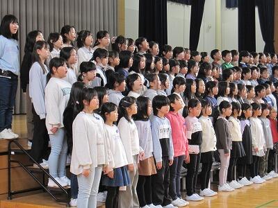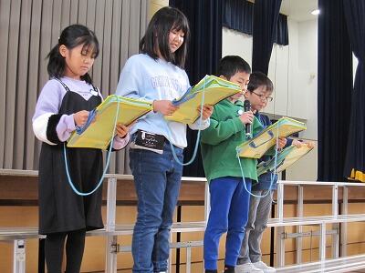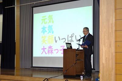 次に、校長先生からお話がありました。2学期の始業式でお話のあった「笑顔になる言葉を使おう」について、各学年でどのような様子だったかということを、先生方からのお話をもとに紹介していただき、生活の中で「ふわふわ言葉」を使う場面が増えてきたことについてほめていただきました。学習発表会のがんばりや、朝の挨拶が上手になってきたことなどもほめていただき、子どもたちも落ち着いて、話を聞いている様子が見受けられました。
