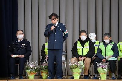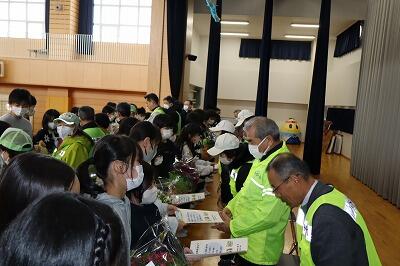 毎朝、子どもたちの安全を見守ってくださる方々への感謝の会をおこないました。生活委員長のお礼のあいさつと、子どもたちからのお手紙および花の鉢を贈りました。代表の方のお話の中で、指導員さん方は「子どもたちのあいさつから、1日の元気をもらっている」とのことでした。全校生で校歌を元気よく合唱し、日頃の感謝の気持ちを伝えました。